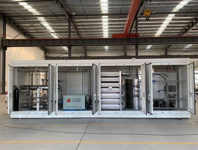 氣化增壓計(jì)量撬是把液態(tài)氣體通過(guò)高壓柱塞泵增壓至氣體需要的出口壓力,高壓液態(tài)氣體通過(guò)氣化器氣化,輸出穩(wěn)定高壓氣體的一種裝置。增壓計(jì)量撬由撬塊、箱體、高壓柱塞泵、控制閥、流量計(jì)、過(guò)濾器、出氣管、進(jìn)氣匯管、進(jìn)氣口、出氣匯管、排污管和安全放氣閥等部件組成。根據(jù)用戶需求可增加加臭等其它系統(tǒng)裝置。