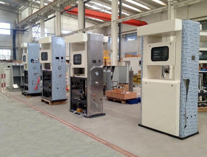 (7)加液機面板采用不銹鋼材質(zhì),包括所有必要的計量元件、閥門、安全裝置;加液機的操作面板和顯示安裝在機柜上,便于操作。
